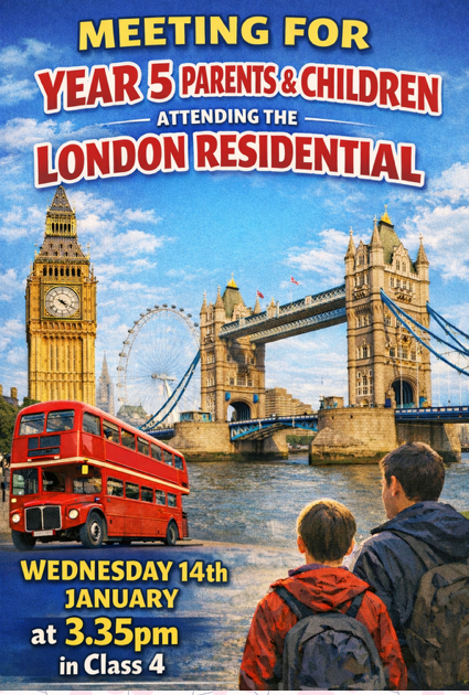 This year I will be supporting with the year 5 residential to London. I am very much looking forward to spending some time with our year 5 children and engaging in the range of activities that have been planned for our visit. Next Tuesday, I am meeting with the staff from our other TEAMS schools to finalise the trip and would like to invite parents of children in year 5 who are attending the residential to a meeting with Mrs Hopkins and myself on Wednesday 14th January at 3:35pm in class 4. This will be an opportunity for staff to go through the itinerary and enable us to answer any questions our parents may have. Today your child will come home with an information pack. Please do read through this information prior to our meeting.